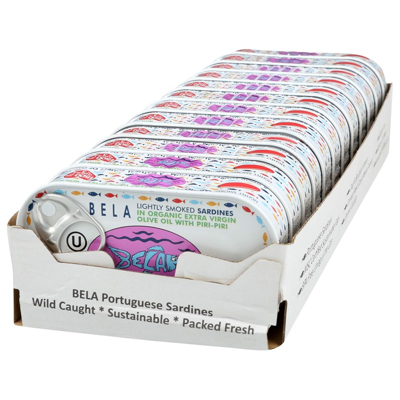 Bela Lightly Smoked Sardines in Organic Extra Virgin Olive Oil with Piri Piri - 12 pack
