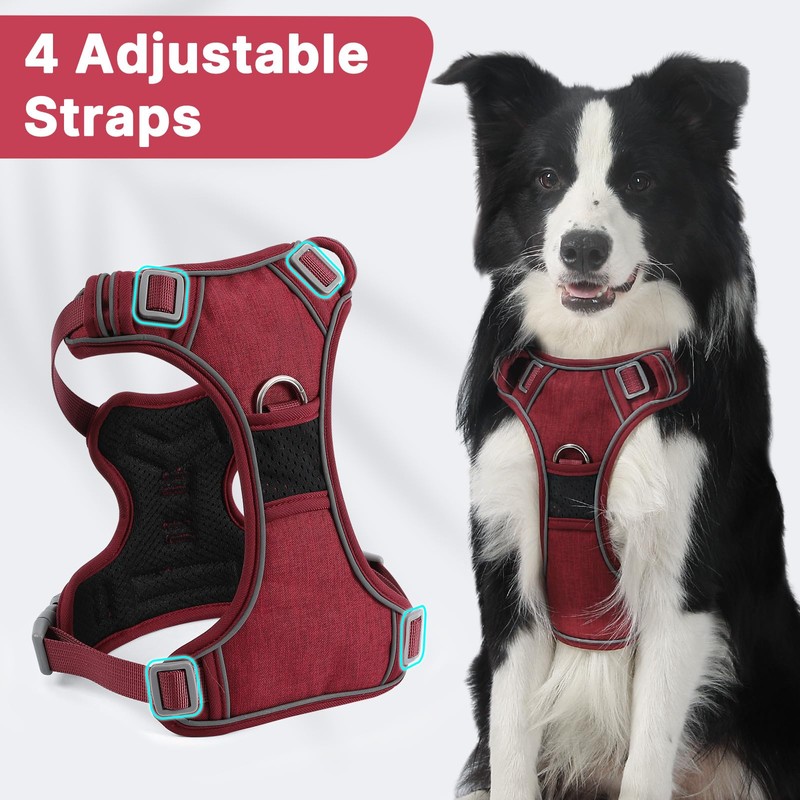 - ★【Easy to Wear & Fully Adjustable】Our adjustable dog harness has 2 quick release buckles for easy on and off. Four fully flexible straps fit most breeds for a snug fit and freedom of movement. Adjustable 2 chest straps and 2 neck straps are available in a variety of sizes to suit your dog's growth and weight.