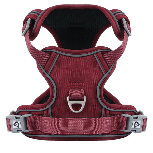 - ★【No Pull, No Choke】The anti pull dog harness is specially designed with 2 metal leash rings for safer dog walks, one on the front chest and one on the back: Using the front one can stop your dog from pulling on walks, perfect for dog training or for dogs that are prone to pulling. And the back one is perfect for casual walks, jogging, hiking, and more. Also, our no pull harness for dogs uses front clip design that distributes pressure evenly across the body to prevent pulling and choking.