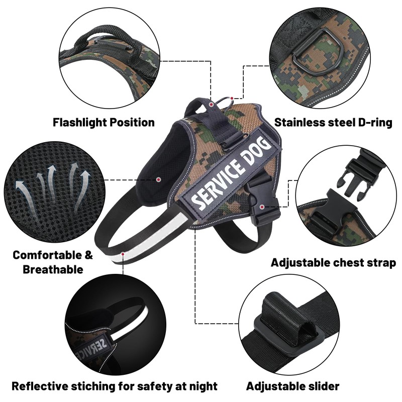 Belababy Service Dog Harness Small Medium Large, Adjustable Emotional Support Dog in Training Harness with Sturdy Handle, Reflective Therapy Puppy Vest, S, Green Camouflage