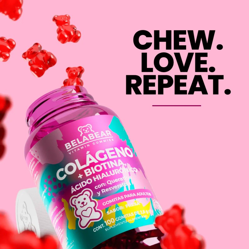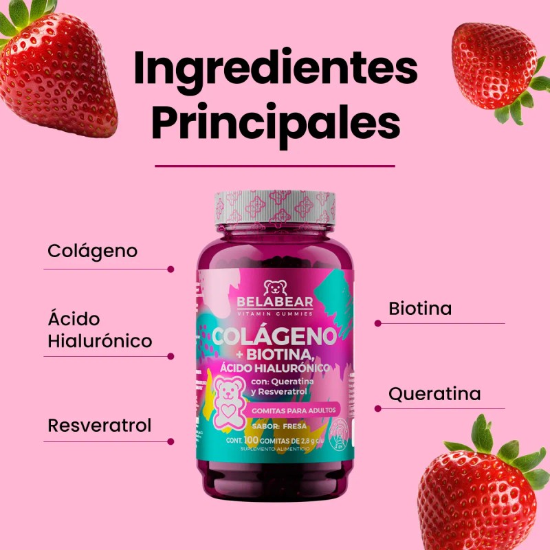 🍓 Belabear Gomitas de Colágeno – Pack 3 Unidades (990g) | Deliciosas gomitas sabor fresa que cuidan tu piel, cabello y uñas 💅✨ ¡Nutrición y belleza en cada mordida! 💖
