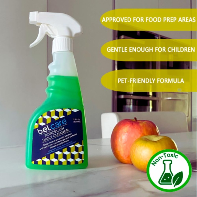 BELCARE Porcelain Kitchen Countertop Cleaner & Bathroom Vanity Cleaner, pH-Neutral, Streak-Free, Specially Formulated for Porcelain Surfaces – 17 fl oz