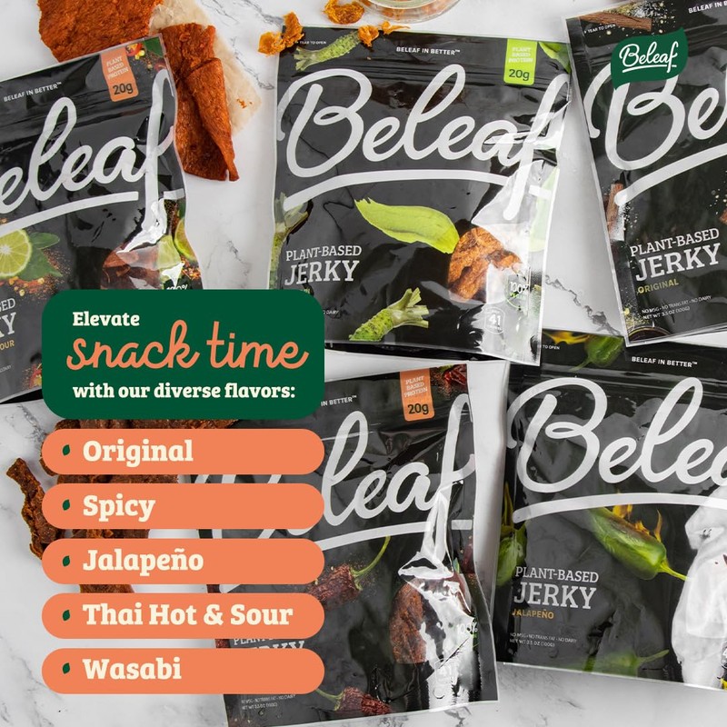 Beleaf Spicy Plant-Based Jerky: High-Protein Snack – Healthy and Flavorful Vegan Jerky for On-the-Go Energy – Tasty Meatless, Vegetarian Meat Alternative (1 Pack)