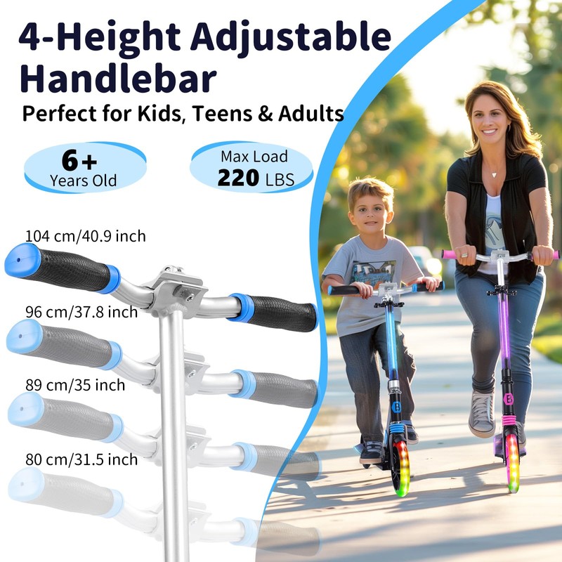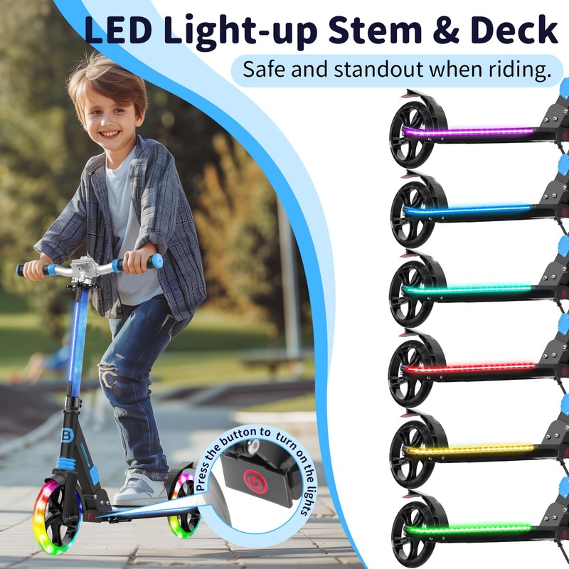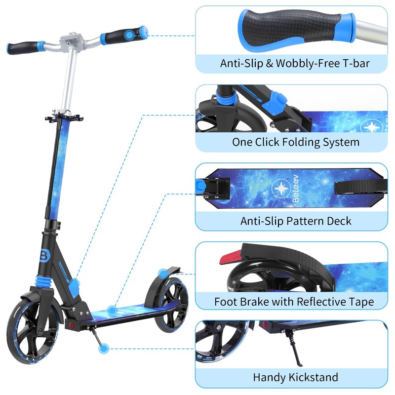 BELEEV V8 Scooters for Kids Ages 6+ with Light-Up Wheel & Stem & Deck, 2 Wheel Folding Scooter for Adults Teens, 4 Adjustable Height, Lightweight Sport Commuter Scooter, up to 220lbs (Galaxy Blue)