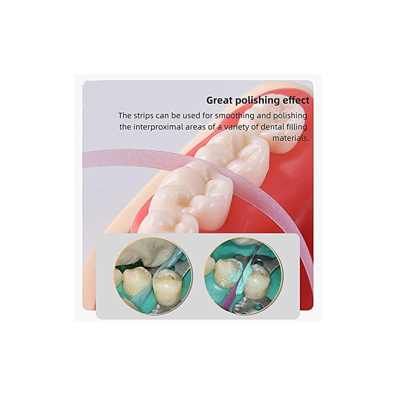 - ⚕️ The Polishing Strip - Used for polishing for tooth gap fillers where difficult to reach. Resistant to abrasion, tear resistant, remain flexible and do not damage the gums.