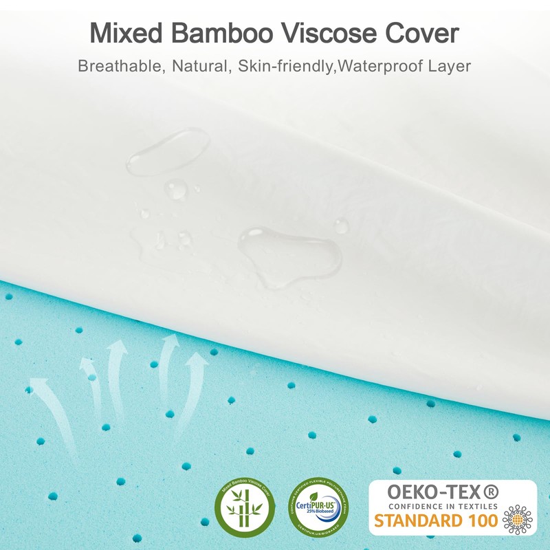 - BREATHABLE AND SOFT MATTRESS TOPPER: A 3-inch memory foam mattress topper is a perfect addition to your old mattress, providing extra softness with pressure-relieving memory foam. It makes your bed more comfortable. Gel memory foam is a matrix hole design, surrounded by mesh design, the cover is mixed bamboo viscose. All are breathable.