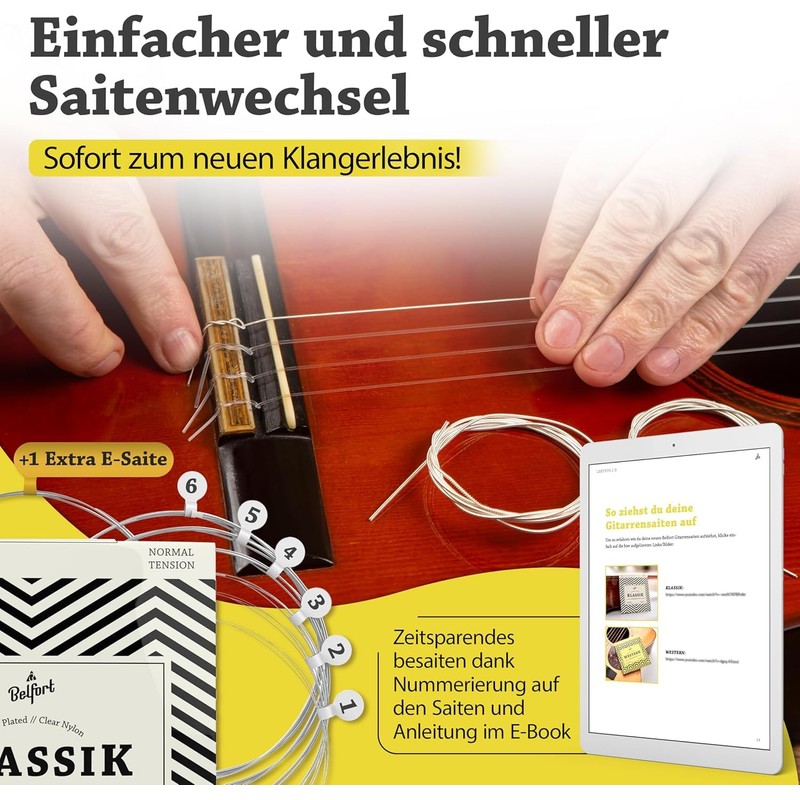 - All-rounder: whether gentle melody play or powerful chords, Belfort classic guitar strings are optimised for maximum flexibility in all playing types. Suitable for beginners and professionals (nylon guitar strings).