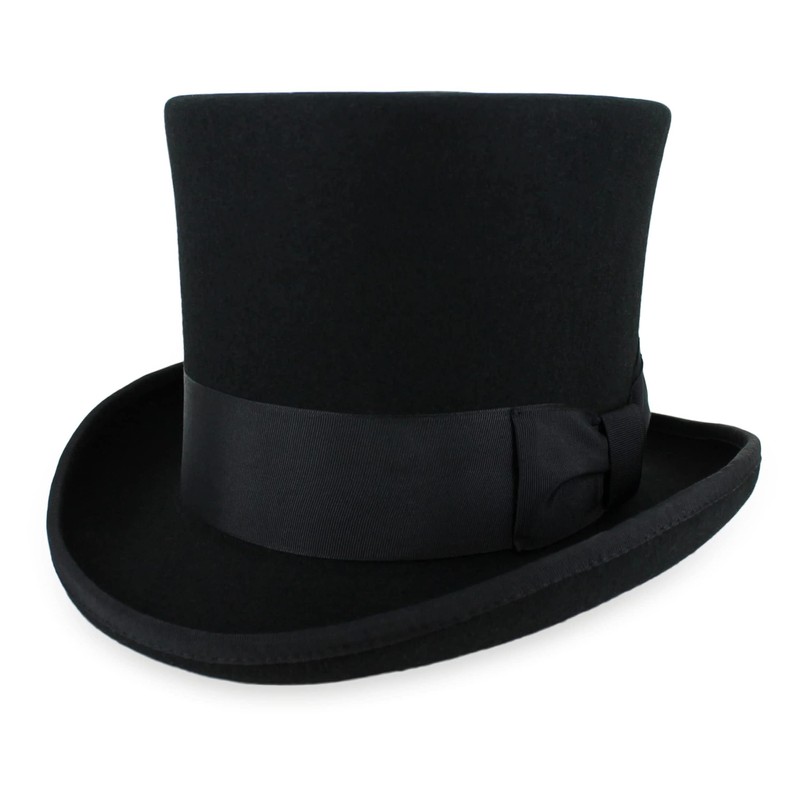 - THEATER QUALITY 100 percent wool felt body and smooth leather sweatband makes this the perfect men’s top hat for serious collectors and formal wear lovers