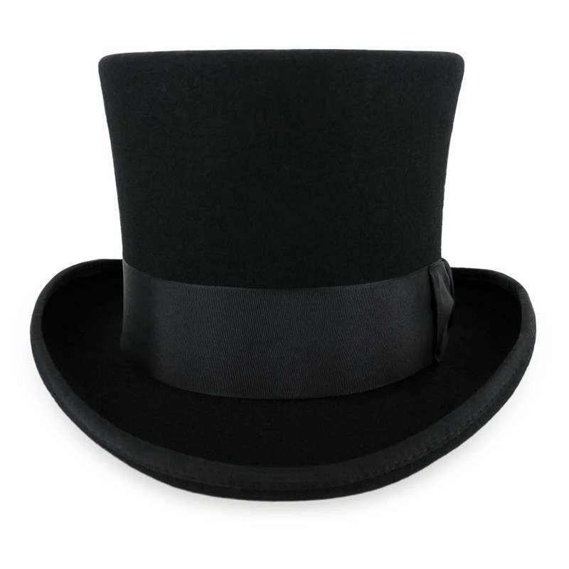 - TRADITIONAL STYLE Features an early top hat style with a 2.5-inch brim and a 6.5-inch flared crown and is finished with a stylish 2-inch grosgrain hat band
