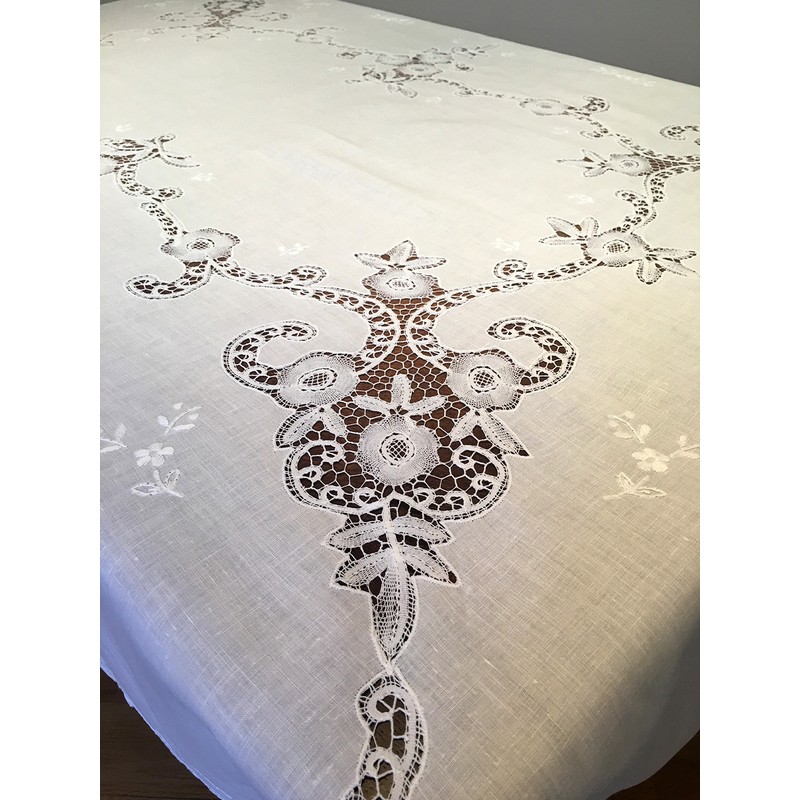 Belgian Handmade Lace Tablecloth with Bobbin Lace Trim