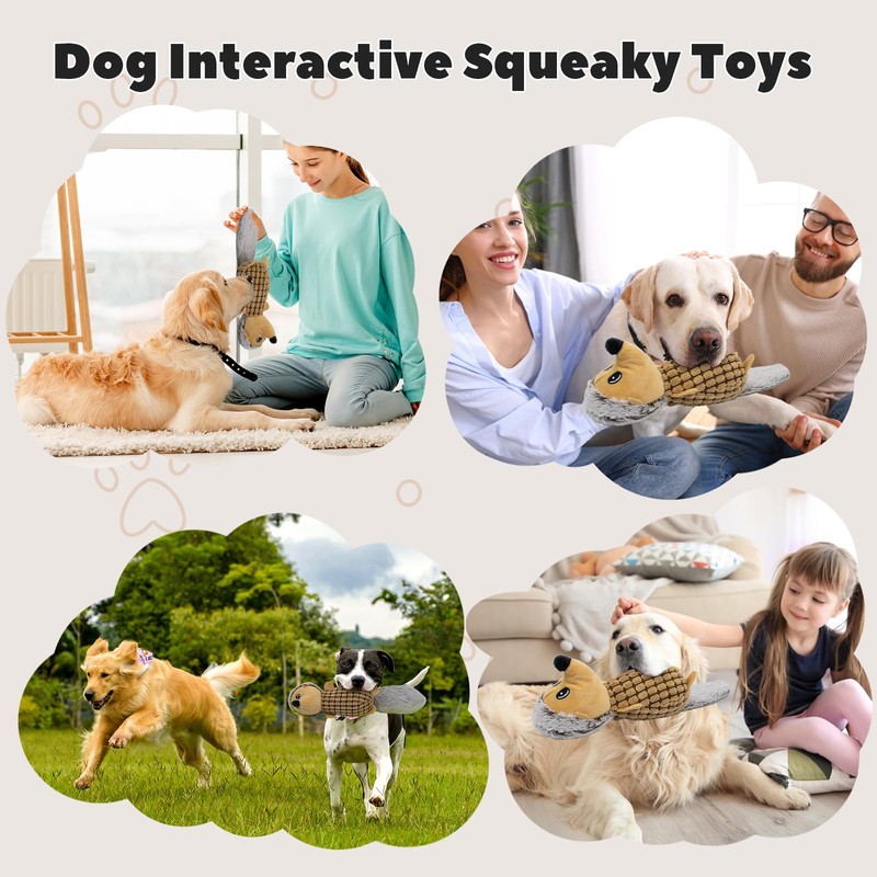 - 【Interactive Dog Toys & Improved Relationships】:This sturdy dog squeaker toy has a built-in sound sac and crinkle paper, soft cotton makes it comfortable for dogs to touch, when your pet chews on the toy it will make a sound, it's the perfect toy for IQ and interactive training, you can not only strengthen the relationship with your dog, but also have more fun playing together creating precious memories.