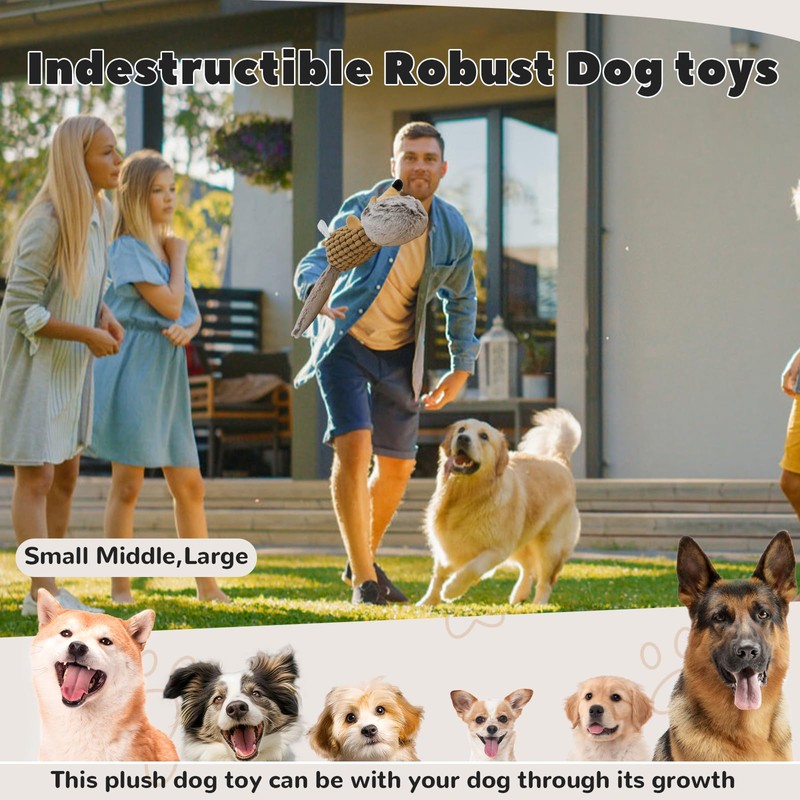 - 【Cute & Soft Fabric Design】This large dog plush toy is made of reinforced seams and chew-resistant lining for added durability and strength. The animal shapes fulfill your dog's hunting and chewing instincts, and the sturdy cotton stitching is perfect for playing and tug of war with your pup, keeping your dog engaged and endlessly entertained during play.