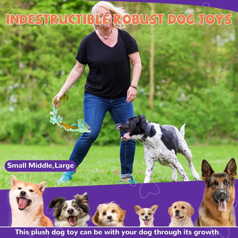 belieonu Crinkle Dog Squeaky Plush Toys No Stuffing Cute Puppy Stuffless Tough Rop Pull Toy, Fun Dog Stuffed Animals Durable Chew Set for Small Medium Large Pup, Lizard