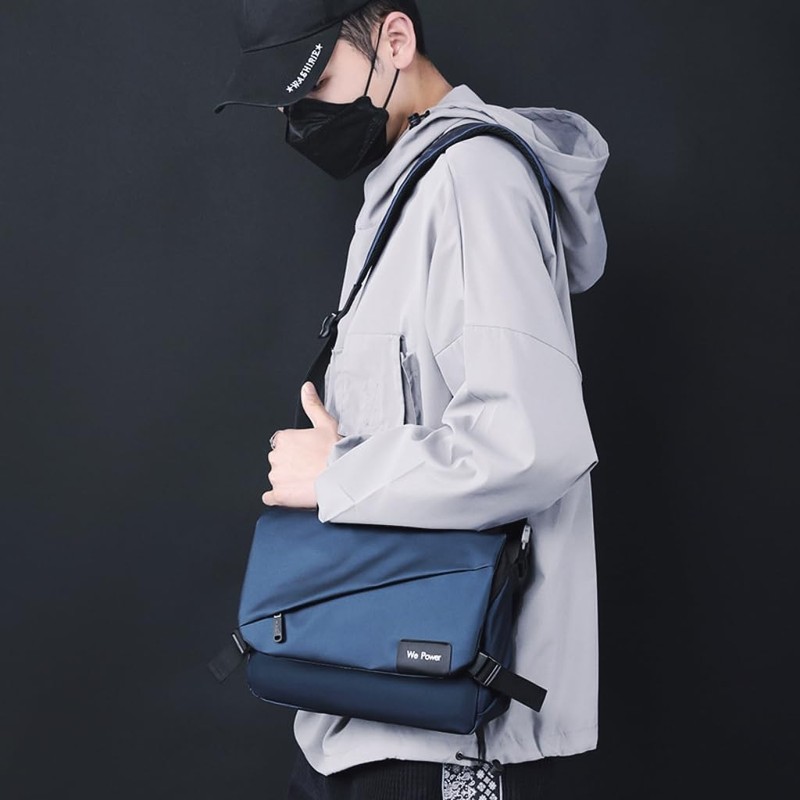 Belijoeuri, Men's Shoulder Bag, Messenger Bag, Modern Style, Waterproof, Multi Compartments, Large Capacity, Perfect for Work and Leisure (Blue), blue, XL