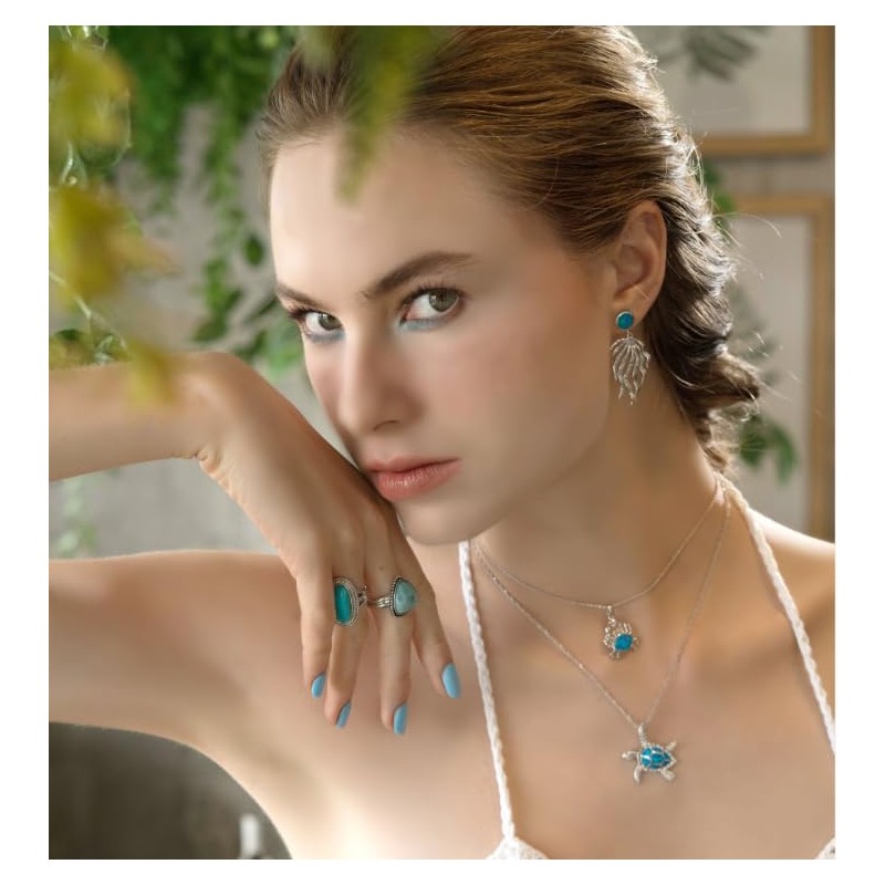 Belinda Jewelz Larimar - Anillo de plata de ley 925 con forma de corazón, estilo clásico, bohemio, gitano, 14 mm, trillón elegante, accesorio de joyería, 6, Gema, Turquesa