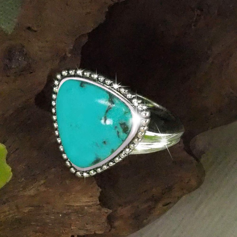 - Anillos de piedras preciosas clásicas atemporales de color azul turquesa estabilizado; acabado pulido que no se deslustra plata de ley chapada en rodio de alto brillo; accesorios de joyería de artesanía de alta calidad; anillo apilable para apilar capas; elegante diseño retro clásico