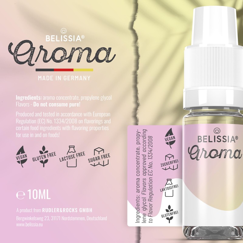 • Calorie-free: Don't be afraid of calorie bombs! The Belissia food aromas conjure up a great taste without additional calories. They are sugar-free, fat-free, lactose-free and also suitable for a vegan diet.