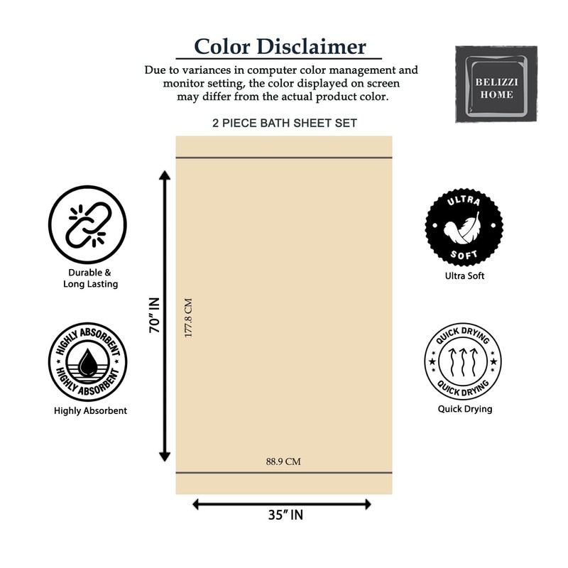 - Each set contains two (2) 100% pure cotton bath sheets 35 x 70 Inch