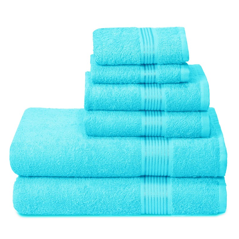 Belizzi Home Ultra Soft 6 Pack Cotton Towel Set, Contains 2 Bath Towels 28x55 inch, 2 Hand Towels 16x24 inch & 2 Wash Coths 12x12 inch, Ideal for Everyday use, Compact & Lightweight - Turquoise Blue