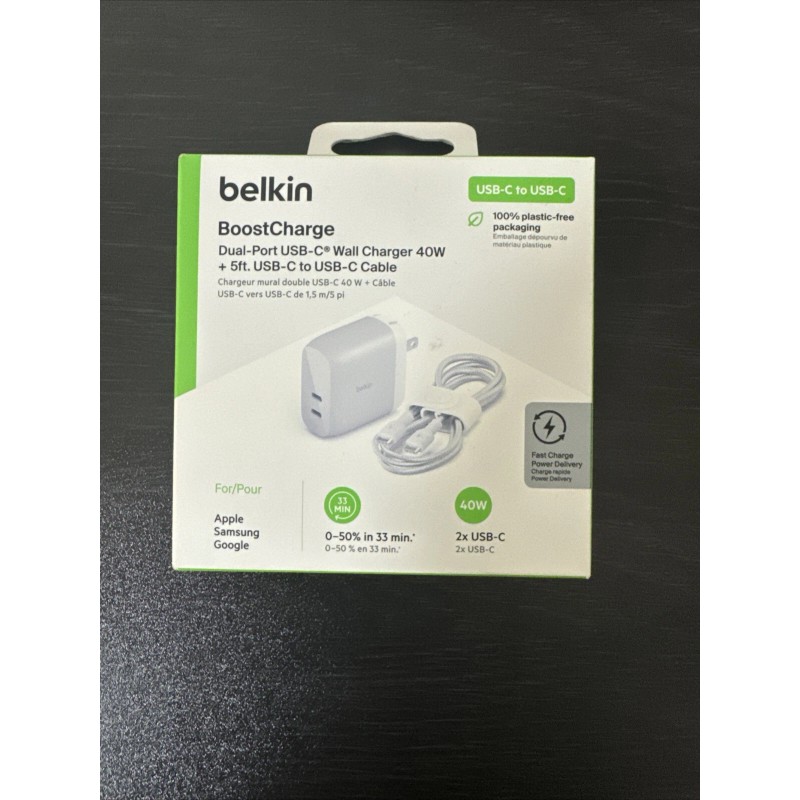 Belkin Boostcharge Dual-Port USB-C Wall Charger 40W + 5ft USB C To USB C Cable B