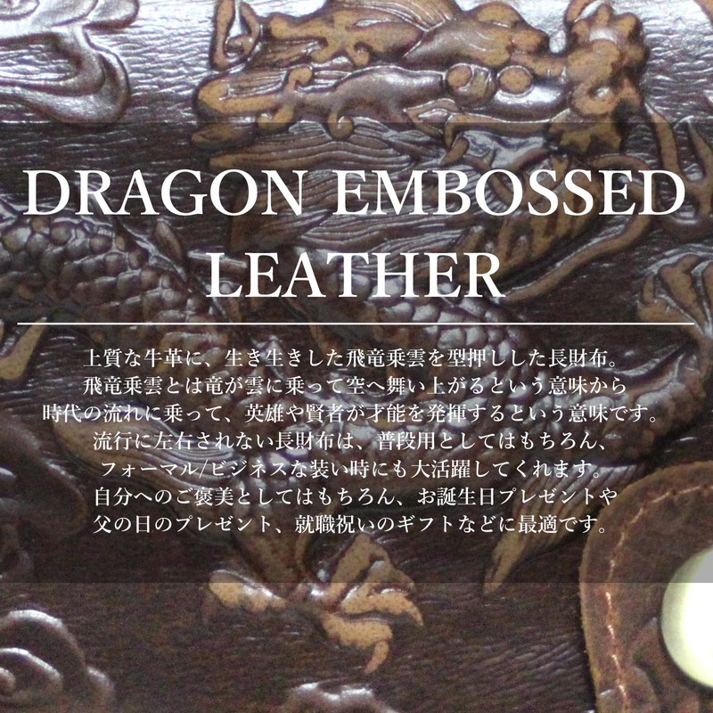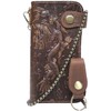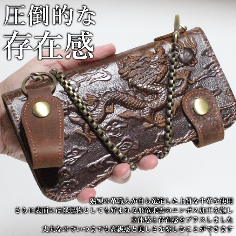 Belkut Genuine Leather Dragon Bi-Fold Long Wallet with Wallet Chain, Antique, Thin, Compact, Feng Shui, Good Luck, Braun