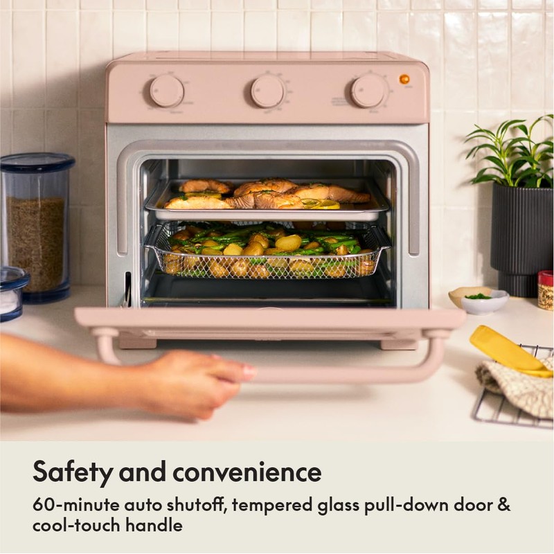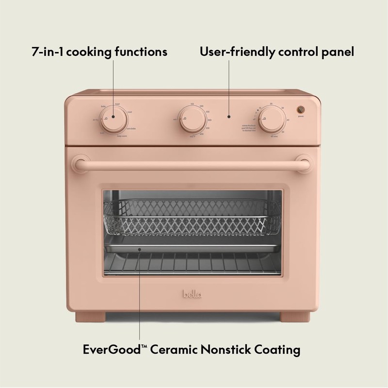 bella Air Fry Toaster Oven, 7 Preset Cooking Options, Dishwasher-Safe EverGood Coated Trays Included, 60-Minute Auto Shutoff w Audible Timer, Power Indicator Light, 1700 Watt, Blossom