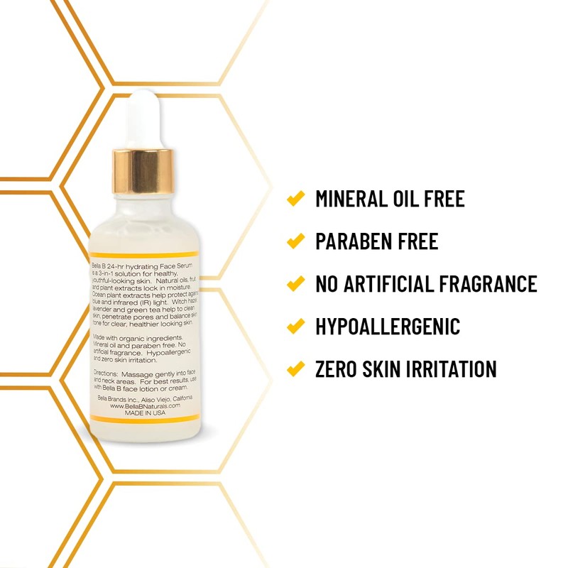 - FACE SERUM - This all natural face serum is made with organic ingredients, mineral oil, and is paraben-free. Our face serum is hypoallergenic and contains no artificial fragrance.