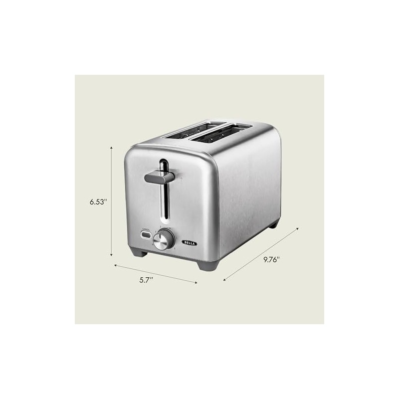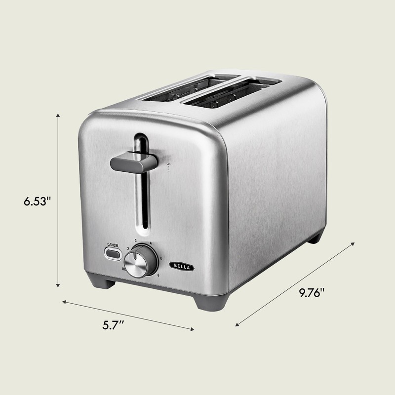 BELLA bella Stainless Steel 2 Slice Toaster with Extra Wide Slots & Removable Crumb Tray, 6 Browning Options, Auto Shut Off & Reheat Function, Toast Bread, Bagel & Waffle