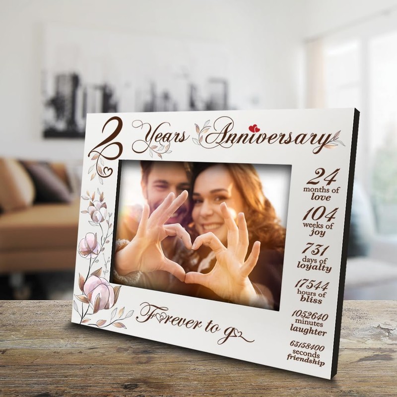 - ❤️This picture frame is a timeless piece that encapsulates the cherished moments of the past two years, preserving them for a lifetime of memories to come. The classic cotton pattern adds a touch of tradition and warmth, encapsulating the comfort and familiarity that has grown between you both.