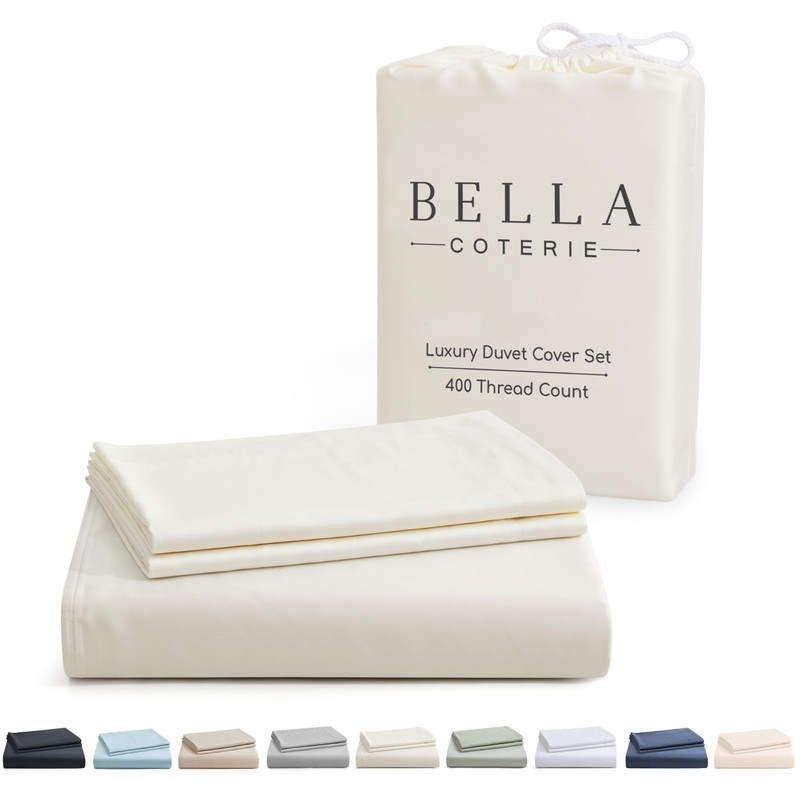 Bella Coterie Luxury King Duvet Cover Set | Organically Grown | Ultra Soft | Cooling | Two Luxury Pillow Shams | Viscose Made from Bamboo | 106 x 94 | No Insert [Ivory]