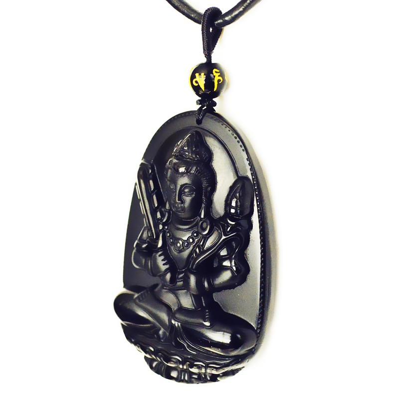 - Akasagarbha Buddha Bodhisattva pendant necklace amulet made of 100% natural black obsidian gemstone. Unisex,