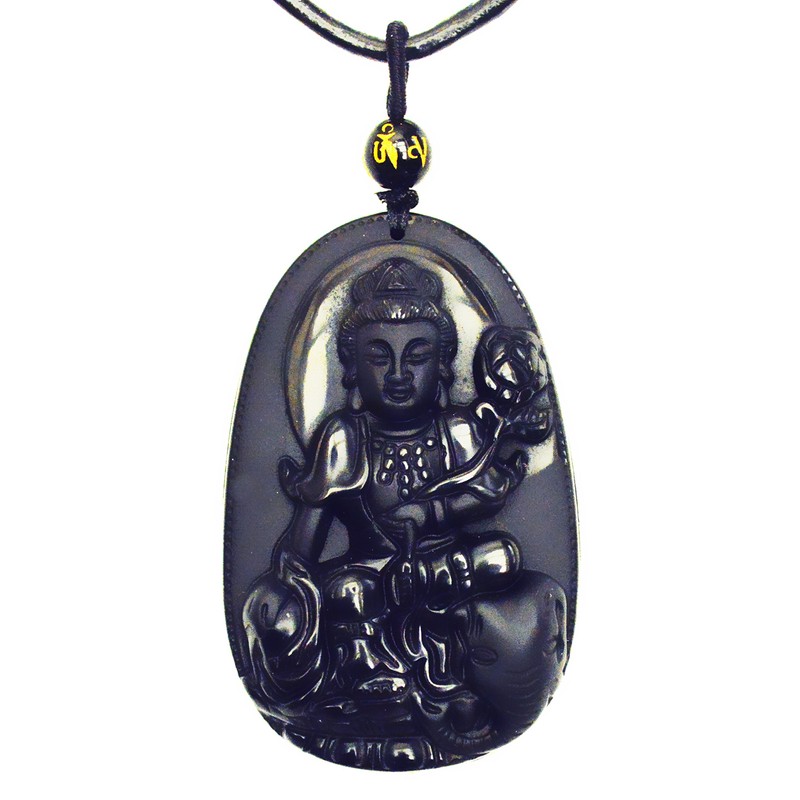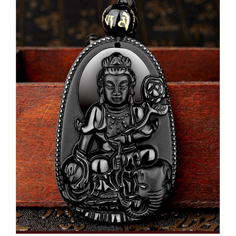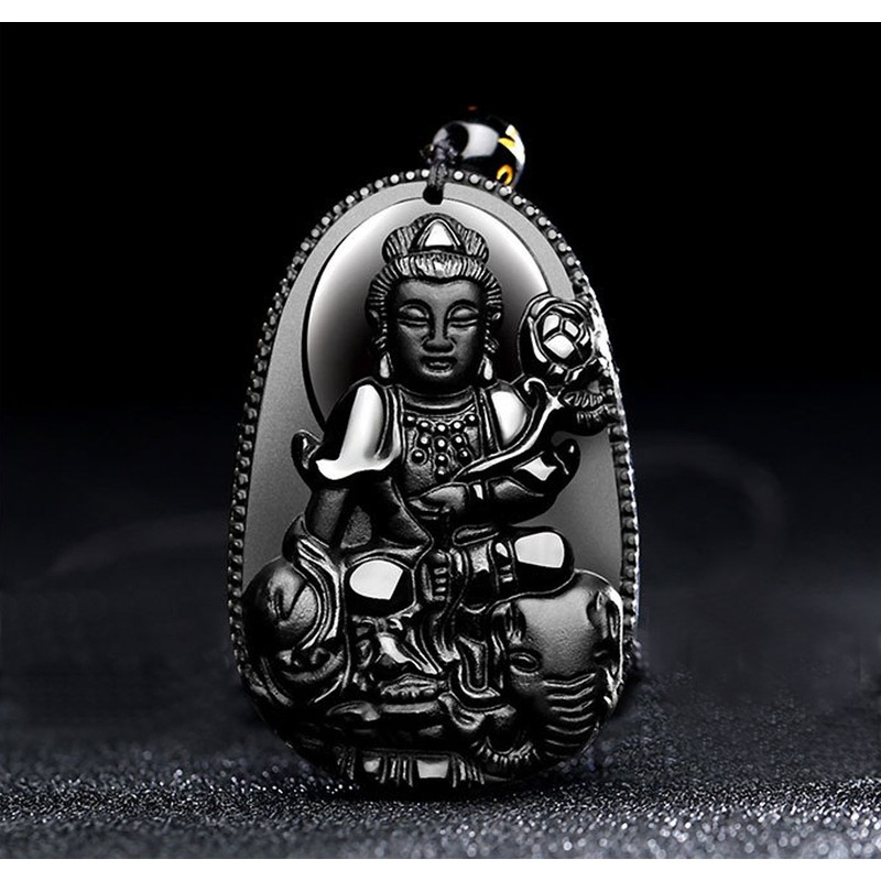 - Samantabhadra Buddha Bodhisattva Amulet Pendant Necklace 100% Natural Obsidian