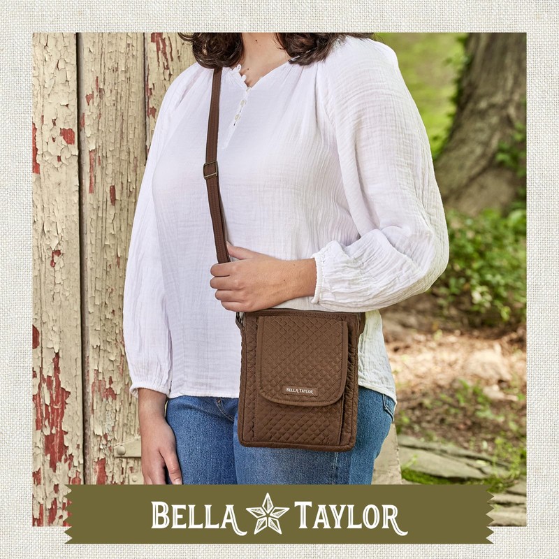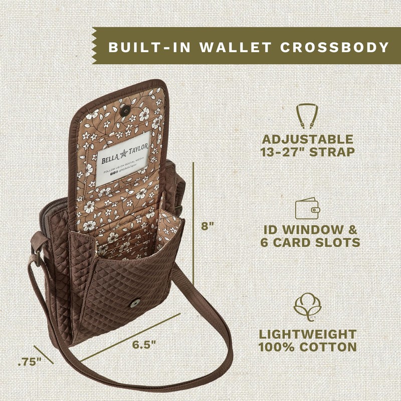 Bella Taylor Mini Crossbody Purse with Built In Wallet, Quilted Chocolate Brown Microfiber