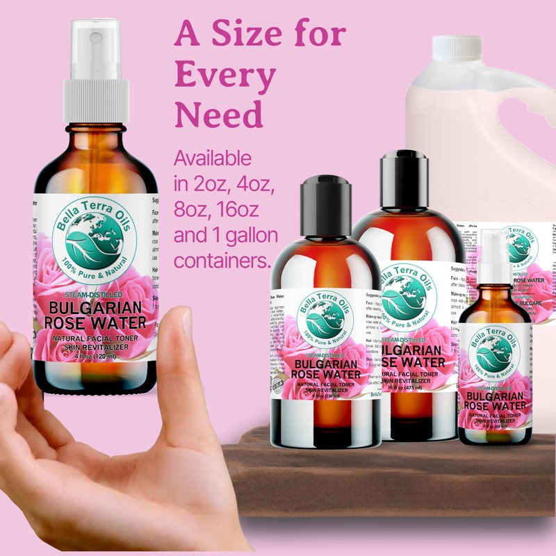Bella Terra Oils - Organic Rose Water Mist 4 oz - Capture The Bulgarian Rose Essence, Perfect as a Gentle Rosewater Face Mist, Free from Synthetics