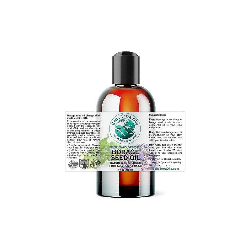 Bella Terra Oils Premium Borage Seed Oil with High GLA – 8 oz, Luxurious Skin Radiance, Quick Absorption, Nourishing
