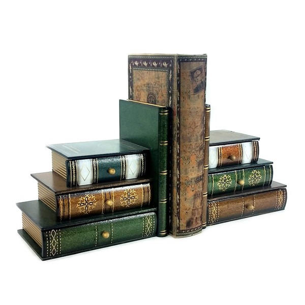 • Classic wooden book bookends library nice 6 small hidden drawers