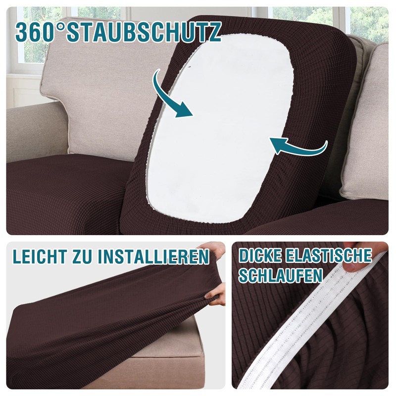 BellaHills Sofa Throws Seat Cushion Bench, Super Soft Elastic Sofa Cover with Elastic Base, Universal Elastic Sofa Cover, 3 Seater + Chaise Lounge, Brown