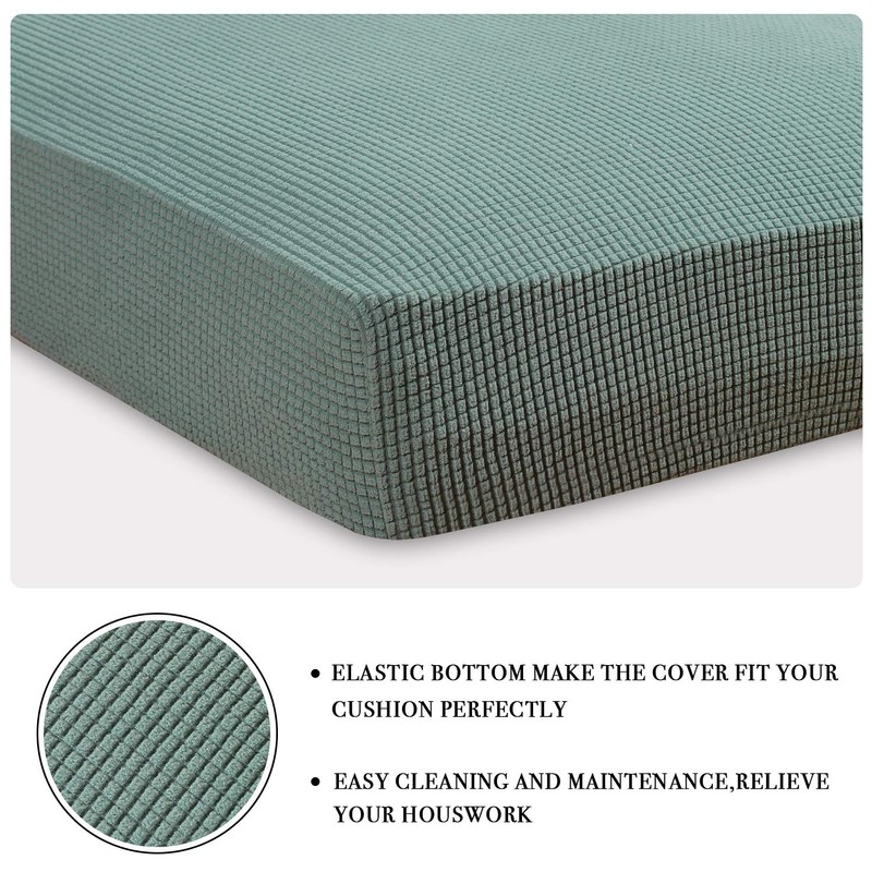 - PERFECT FIT: Our jacquard cushion cover are stretchy to fit regular square seat cushions and also T-cushions. Moreover, elastic cord sewn on bottom give the sofa/ furniture a whole protection. 3 size available: Chair cushion width from 19.6" to 29.5"; Loveseat cushion width from 39.2" to 59"; Sofa cushion width from 58.8" to 88.5"