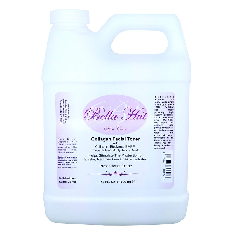 Bellahut Collagen Facial Toner with COLLAGEN, BIODYNES, EMPP & TRIPEPTIDE-29, A collagen infused toner loaded with peptides that helps tighten skin and minimize pores (32 Ounce)