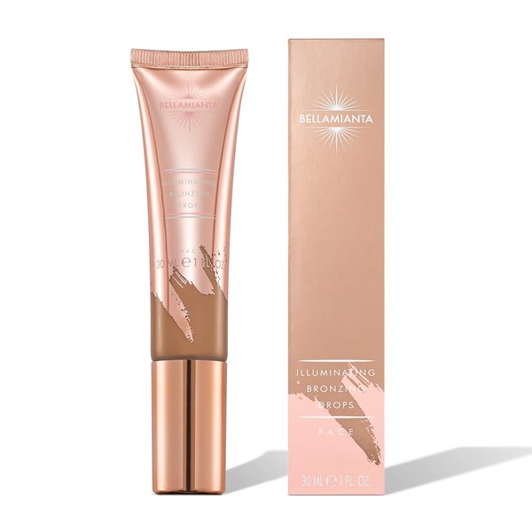 Bellamianta Instant Illuminating Bronzing Drops with Hyaluronic Acid - Hydrating and Buildable Glow Drops - Hybrid Bronzer Skincare Highlighter Makeup to Plump Fine Lines and Wrinkles