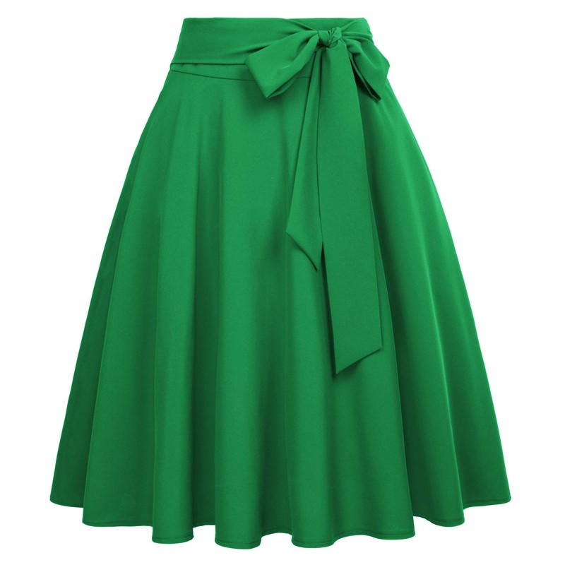 - Skirt Feature: High waist skirts; Open side-seam pockets; Fixed belt adorns waist; Flared A-Line silhouette; Concealed zipper in the back