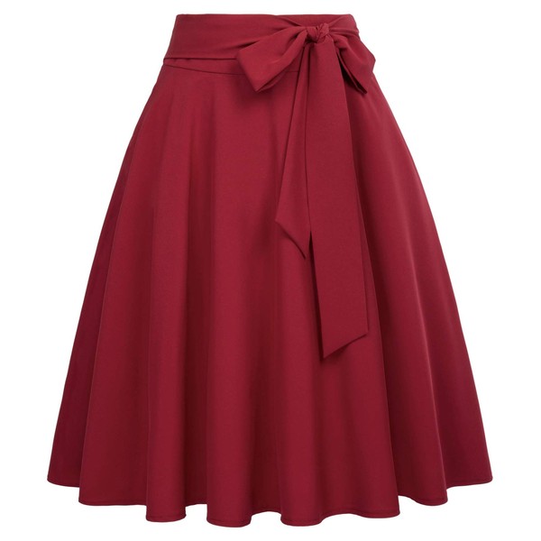 Belle Poque Women High Waisted A-Line Flared Midi Skirt with Pockets Wine Size L BP561-2