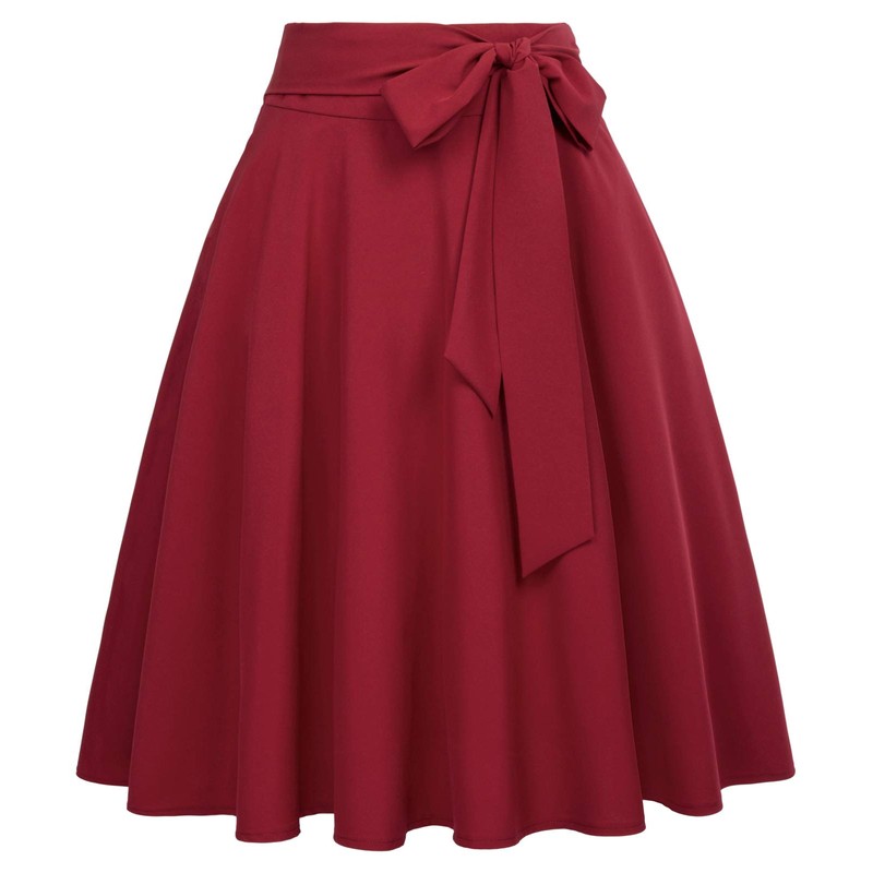 - Item Feature: High waist skirts; Open side-seam pockets; Fixed belt adorns waist; Flared A-Line silhouette; Concealed zipper in the back