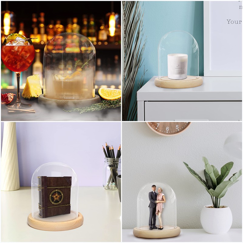 - MULTIPURPOSE DISPLAY CASE: This glass dome can be used for so many different uses. Display your succulents, small flowers and cacti inside on a mantlepiece. Drill a small hole in the base and insert a single red rose. This would make a beautiful home or wedding centrepiece. Make smoked cocktails using this dome for a dinner party. Display special books, ornaments, candles, rice lights, 3D figures and more. This would also be a great gift for Christmas, birthdays and anniversaries.