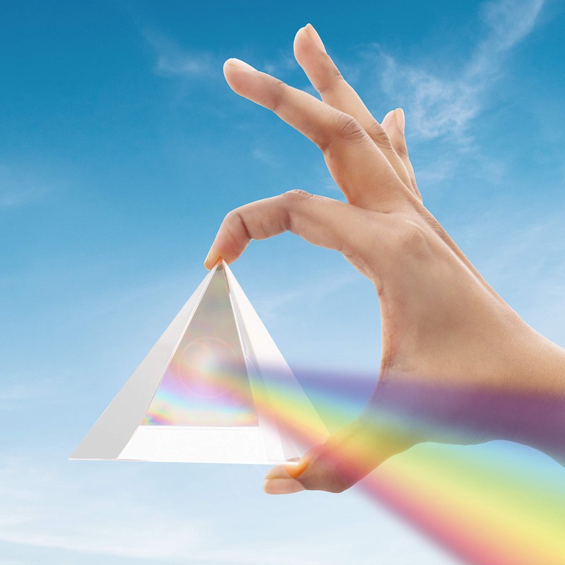 - BEAUTIFUL SPECTRUM OF COLOURS: With this crystal pyramid prism you can use it to split a beam of light into different spectral components which will display all the colours of the rainbow. This can make for some really interesting photos and is great for teaching light spectrum physics. The prism is made of clear K9 crystal glass and measures 8 x 8 x 9.7cm (3.14 x 3.14 x 3.81 inches). The total weight is 432 grams.