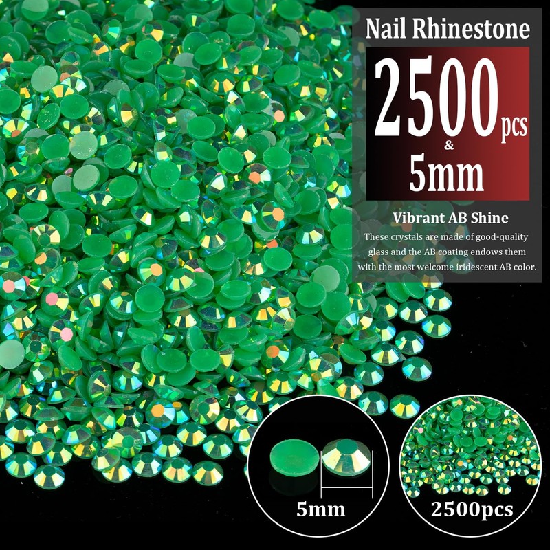 PACKAGE CONTENTContains approximately 2500 pieces of 5mm-SS20(0.2") Dark Green AB color bling resin rhinestones. Additionally, a tweezer and 1 pickup pencil are included for easy picking up of glitter gems.VIBRANT GEMS FOR CRAFTMade of choice resin, these rhinestones are lightweight, durable, and economical. Designed with perfect cutting facets, these high-quality jelly gems have a delicate and exquisite shine, enhancing the appeal of your crafts or nails with their vibrant colors. The AB coating is firmly combined on the outer surface of each rhinestone, which will have different color performances under different light or different refraction angles, providing long-lasting sparkle.TIPS FOR USENon-hot fix jelly flatback gemstones require adhesive for nail art, crafts, or artwork design. We recommend using B7000 rhinestone jewelry glue for DIY projects and UV / quick dry nail glue for nail art. To apply the resin rhinestones, first, clean the surface of your nails or the crafts you wish to embellish. Then, apply the rhinestones with the appropriate glue and wait for them to dry. (Please note that glue is not included.)WIDE APPLICATIONThese sparkling iridescent resin rhinestones are perfect for creating dazzling looks. Use them for face makeup, eye makeup, body art, 3D nail art or bedazzling DIY crafts like shoes, tumblers, mugs, bottles, phone cases, popsockets, scrapbooks, photo frames, diamond paintings, greeting cards, bags, glasses, guitars, keychains, hats, masks, hair clips, bracelets, wristbands, clothing, wedding dresses, and more. Apply it to what you want to bling!HIGHLIGHTSResin rhinestones are packaged by weight, with each pack containing approximately 2500 pieces. Our store also offers a variety of colors and sizes of resin rhinestones. A sufficient amount of resin gems are suitable for paving large area designs such as diamond paintings or cups.