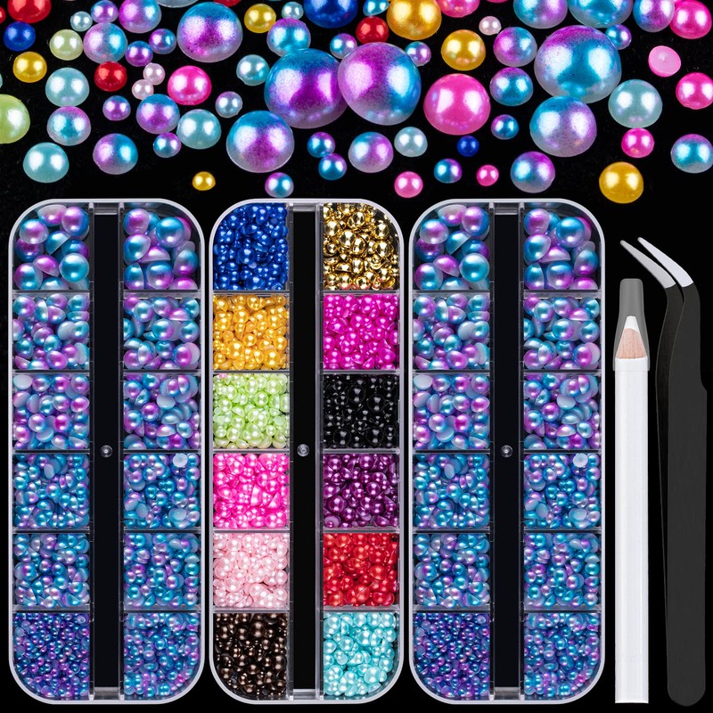 • ✨Package Contains -- 1 Box of Flat-back Half Round Colorful Pearls; 2 Boxes of Flat-back Half Round Blue Mermaid Pearls; 1 Pc of Pick up Pencil And 1 Pc of Tweezer.