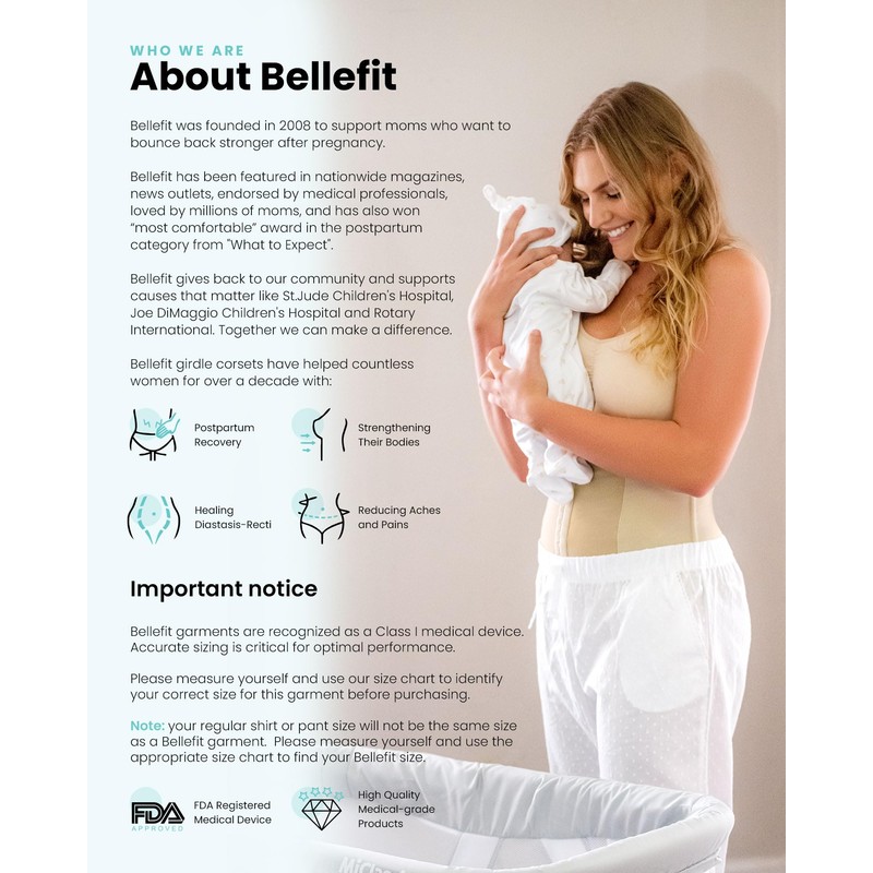 Bellefit Postpartum Girdle with Zipper, Medical-Grade, Compression & Support, Beige, Large