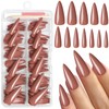 Bellelfin 120Pcs Stiletto Press on Nails, Caramel Stiletto Fake Nails Glossy Long Acrylic Nails Press ons Solid Color Full Cover False Nails for Women Girls
