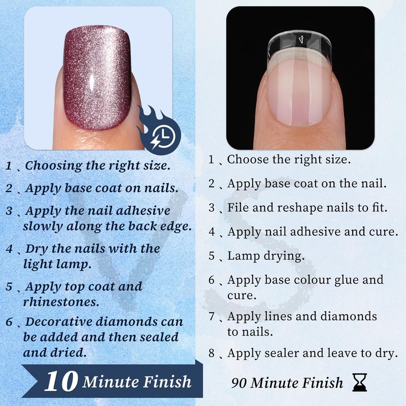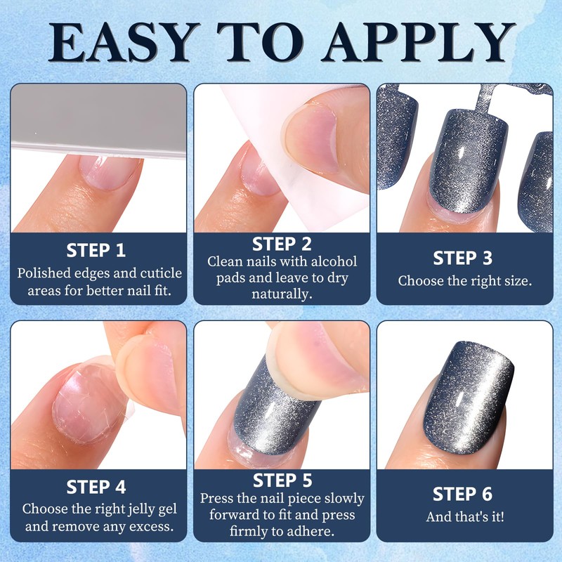 - 【Easy to Use】 Quick and easy to use cat eye fake nails press ons, you are only a few steps from a pro. Acrylic press on nails can wear up to 15 days, which will not affect your daily life. Our press on cat eye nails look very natural and hold color well without separating or streaking, making your nail tips amazing and stylish.